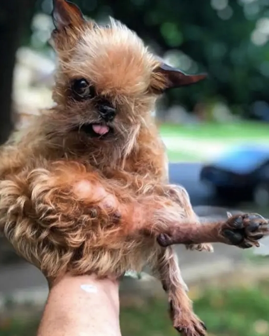 За этой маленькой и слабой собакой похоже вообще никак не ухаживали, а судя по тому, что ее выбросили на дорогу как мусор, еще и жестоко с ней обращались. Алише Бранд стало очень жаль собаку и она захотела взять ее к себе домой.
