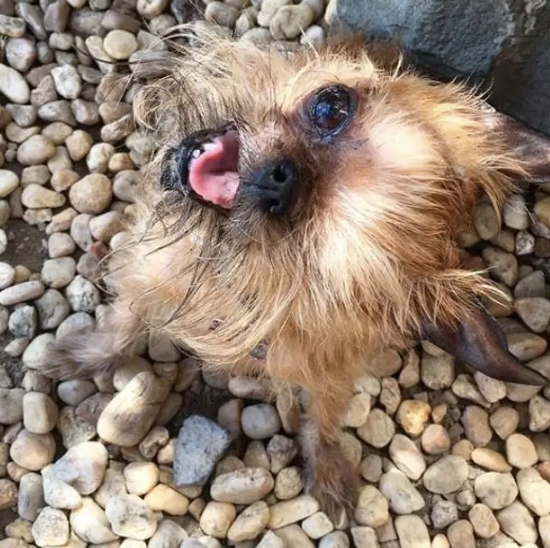 Девушка сразу же позвонила своей маме Алише Брандт и потом мать и дочь повезли собаку к ветеринару. Там выяснилось, что пес мужского пола очень худой и глухой на одно ухо, а травма его глаза оказалась такой серьезной, что вскоре глаз пришлось удалить.